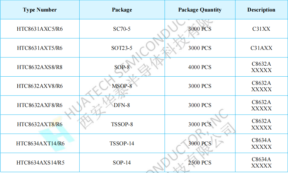available in 8-lead MSOP, DFN2*2, TSSOP and SOP packages. The HTC8634A is available in 14-lead TSSOP and SOP packages.
